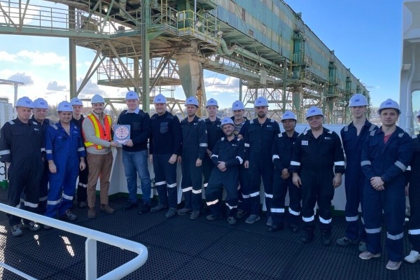 Por la ocasión, se hizo entrega de una placa conmemorativa en nombre de la Autoridad Portuaria al capitán de la nave, que pasó a cargar grano canadiense.