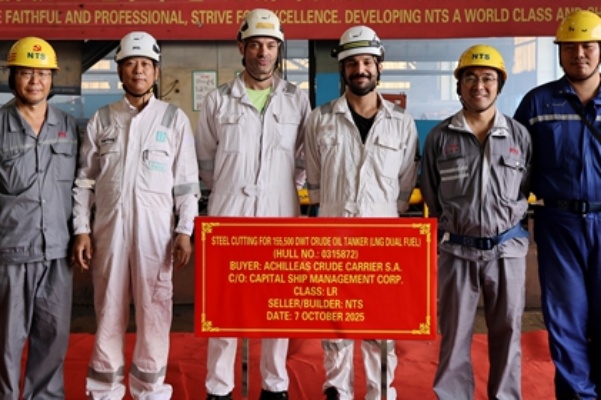 New Times Shipbuilding (TNS), en China, celebró el éxito del corte de acero de dos nuevos buques tanque de petróleo crudo de combustible dual GNL de 155.500 DWT.