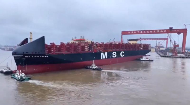El nuevo buque portacontenedores de la naviera Mediterranean Shipping Company (MSC), MSC Saudi Arabia, está cerca de comenzar su navegación en los mares del mundo, luego de salir del dique desde el astillero que está desarrollando su construcción.