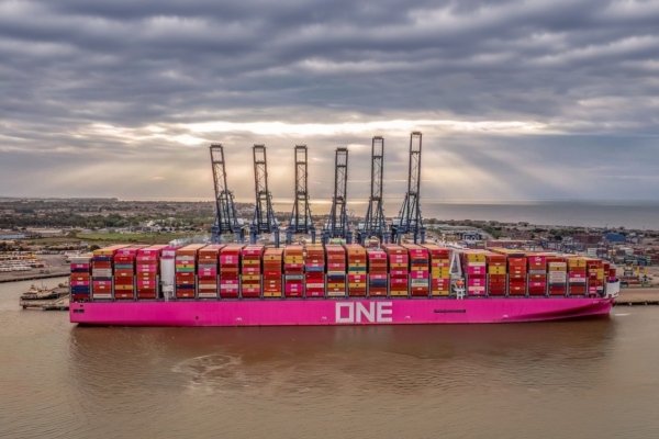Hurchison Ports UK dio la bienvenida al ONE Intelligence en su escala inaugural al Puerto de Felixstowe. Operado por Ocean Network Express, el llamativo barco mega-max de más de 24 mil TEU con casco magenta, hizo una vista impresionante a su llegada.