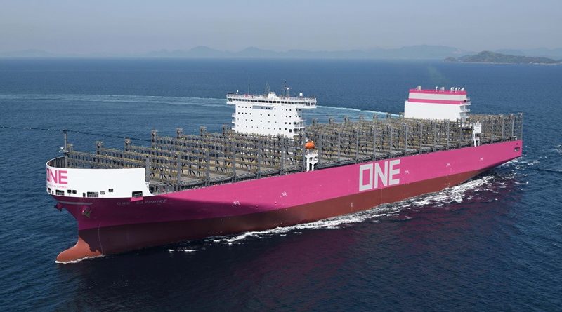 Ocean Network Express (ONE) recibió al nuevo ONE Sapphire, un portacontenedores de 13.900 TEU que fue construido en Imabari Shipbuilding Co.
