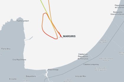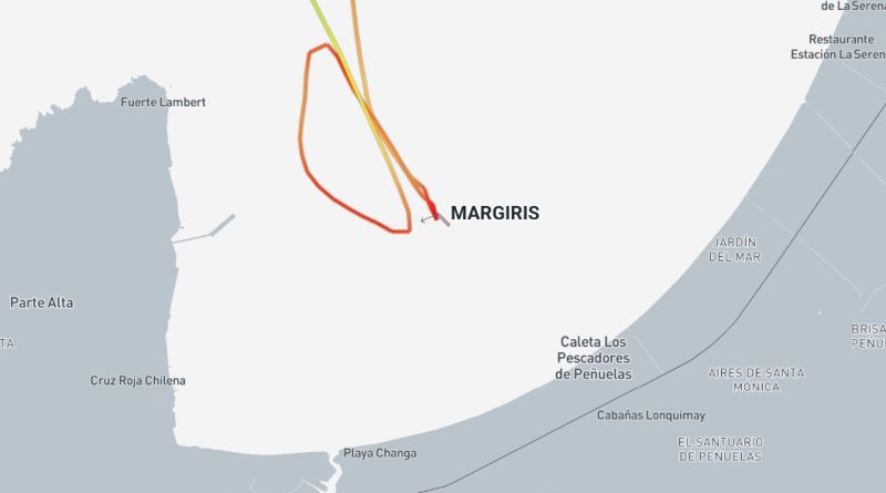 De acuerdo al monitoreo realizado por MarineTraffic de la derrota del Margiris, el buque factoría permaneció a la gira en la bahía de Coquimbo por más de siete horas, haciendo abandono de la zona cerca de las 8:00 am. Actualmente se encuentra navegando en dirección norte.