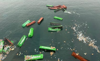 La naviera Evergreen atribuyó el siniestro a los efectos provocados que tuvo el tsunami originado en las costas de Rusia tras ocurrir un terremoto de magnitud 8,8 y sostuvo que la nave “sufrió un fuerte balanceo mientras fondeaba en el Puerto de Callao, Perú, el 1 de agosto. Esto provocó la caída de varios contenedores por la borda”.