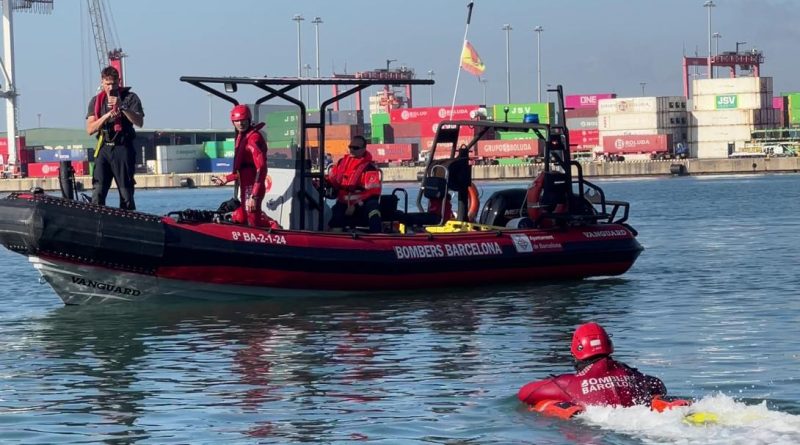 Los Bomberos desplazaron varias dotaciones, entre las cuales hay que mencionar el vehículo de mando adelantado -conectado a la red 5G del Port-, una embarcación para el rescate del herido en el agua, la boya de salvamento teledirigida, el robot de extinción y el dron aéreo.