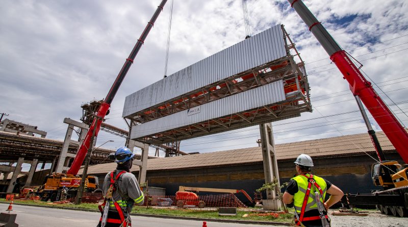 “El levantamiento de la galería metálica es un hito, ya que iniciamos la parte aérea de Moegão. “Hasta ahora estábamos trabajando en el montaje de las estructuras en el terreno”, explicó la coordinadora del proyecto del consorcio Moegão, Caterina Veronese.