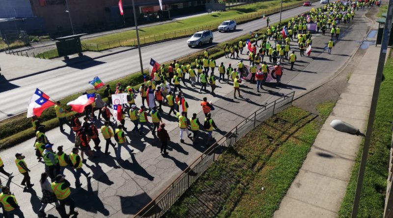 En Concepción y tras dos horas de caminata, la marcha se unió primero a los trabajadores portuarios del comunal Penco-Lirquén, que desde el sector plaza Acevedo, se manifestaron por avenida Los Carrera hasta la rotonda Paicaví, desde donde continuaron en un solo grupo hasta el centro penquista.