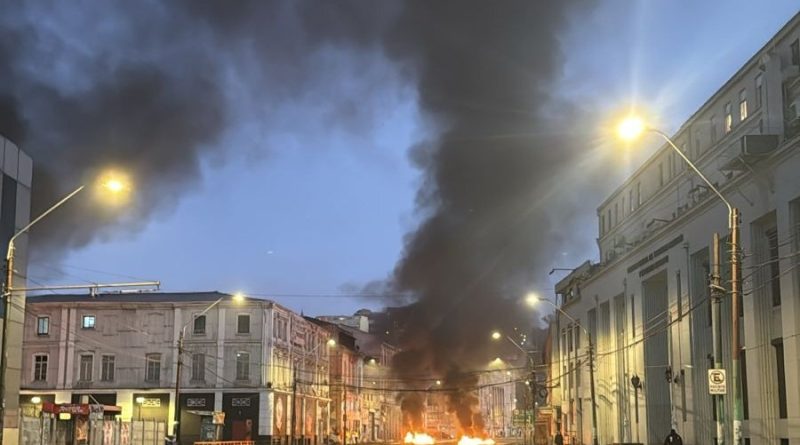 Un grupo de portuarios volvió a bloquear con barricadas incendiarias el tránsito vehicular por calles de Valparaíso, particularmente en cercanías al puerto. Los elementos fueron instalados en Errázuriz, Blanco y Cochranne, lo que mantuvo suspendido el flujo de automóviles en ambos sentidos y por varios minutos.