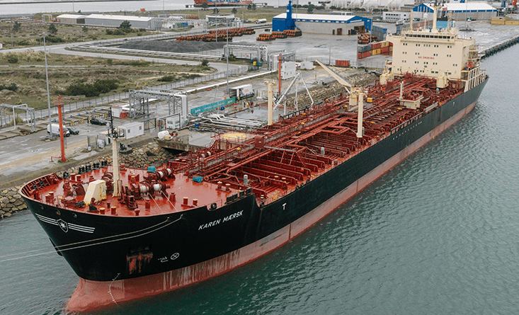 El buque Karen Maersk rompió un récord como la nave más grande que haya recalado a la Terminal de Graneles Líquidos del Puerto de Aveiro.