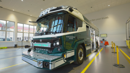 El modelo RTX de la firma austríaca Rosenbauer es 100% eléctrico y cuenta con un backup para extender operaciones por más de cuatro horas. Se trata de una máquina 4×4, con un radio de giro 50% inferior a un carro tradicional, ya que las ruedas traseras pueden configurarse para acompañar el giro, con una serie de funcionalidades diseñadas en torno al trabajo bomberil. El vehículo, con capacidad para nueve personas, tiene 132 KWh de capacidad de energía y un bombeo de 5.600 litros de agua por minuto. Sus baterías pueden recargarse en tan solo 45 minutos.