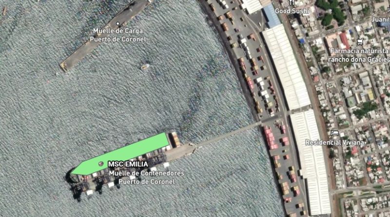 Puerto Coronel recibió la escala inaugural del nuevo portacontenedores MSC Emilia, cuya entrega se concretó en noviembre de 2025. El buque recaló al recinto portuario de la Región del Bio Bio durante la jornada del jueves 25 de noviembre procedente de DP World San Antonio.