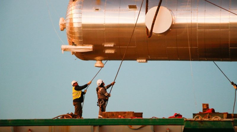 En el Muelle Multipropósito del Puerto de Bahía Blanca se descargó la columna desetanizadora que, junto con las recientemente incorporadas, torres Despropanizadora y Desbutanizadora, formará parte del nuevo tren de fraccionamiento de Compañía Mega.