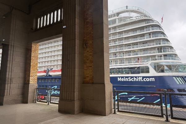 El Mein Schiff 2 fue recibido por una delegación oficial encabezada por David Legouet, presidente de la Oficina de Turismo. El capitán, Hilko Tjard Mahler, organizó un recorrido en barco, seguido del tradicional intercambio de placas y un regalo gourmet curado localmente, una firma de la hospitalidad de Normandía.