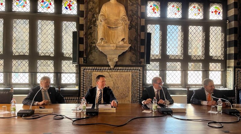 La sede portuaria de Palazzo San Giorgio proporcionó el telón de fondo para la firma de un Memorando de Entendimiento (MoU) entre el Presidente de la Autoridad Portuaria del Mar de Liguria Occidental, Paolo Emilio Signorini, y el Director de Comercio y Transformación de Group Supply Chain & Logistics, DP World, Simón Pitout.