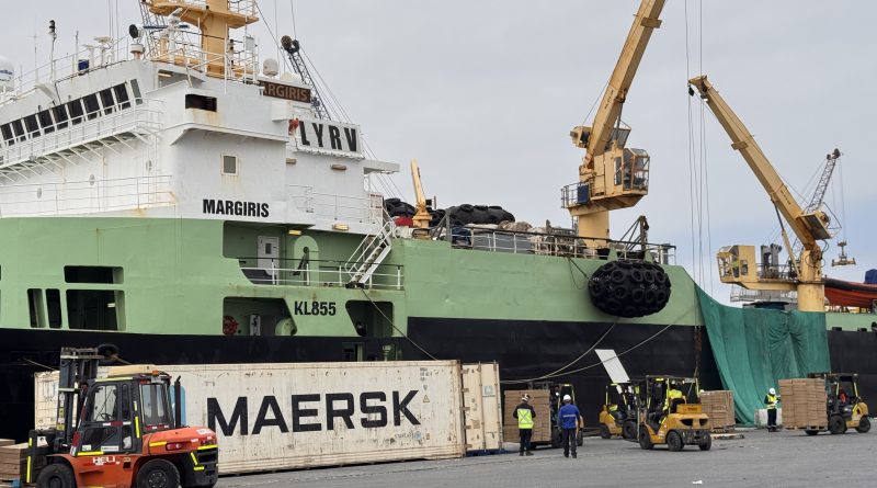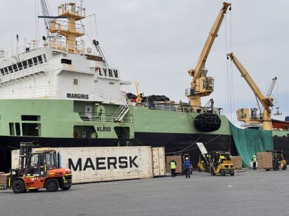 La carga proveniente del Margiris —principalmente compuesta por pesca procesada y congelada, específicamente jurel y caballa, capturada en aguas internacionales— será consolidada en contenedores y exportada hacia África, reafirmando la vocación exportadora y la conectividad internacional del recinto marítimo.