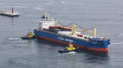 Operación de embarque del Zhong Yuan Hai Yun Jin Qu al Puerto de Iquique