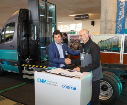“Un primer vehículo que hemos desarrollado, que es un vehículo de trabajo, una plataforma, un chasís con una cabina que se puede adaptar para ser un camión con un pick up que lleva tres toneladas de carga, un furgón de 15 metros cúbicos o un transporte de personas de 15 pasajeros. Lo que hemos logrado es que, siendo un vehículo completamente eléctrico, tenga una autonomía de 600 kilómetros, gracias al uso de dos estanques de hidrógeno con total de 10 kilos de hidrógeno a 350 bares”, explicó el director de CMM.