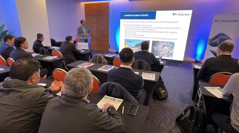 Ante una audiencia integrada por representantes del sector público y privado, incluyendo integrantes de la Comunidad Logística (Comlog), se realizaron seis presentaciones a cargo de Puertos de Talcahuano, Servicio Nacional de Aduanas, Armada de Chile, Ministerio de Seguridad Pública, Fiscalía y el destacado experto en seguridad e inteligencia Guillermo Holzmann.