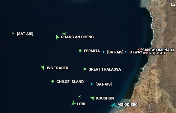 En línea con lo indicado por los datos de seguimiento de buques de MarineTraffic, las estaciones marítimas se encuentran desocupadas y la gran mayoría de los navíos ya están a la gira mar adentro.