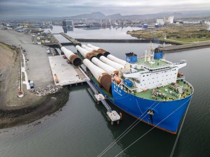 El arribo de las estructuras marcó el inicio de una nueva fase de desarrollo para la iniciativa y una nueva era para el recientemente finalizado centro de energías renovables de Forth Ports.