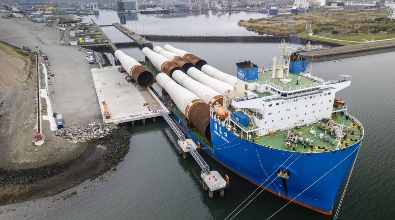 El Puerto de Leith recibió el primer cargamento de monopilotes tamaño XXL que serán destinados al proyecto energético que construirá el nuevo parque eólico marino de Inch Cape.