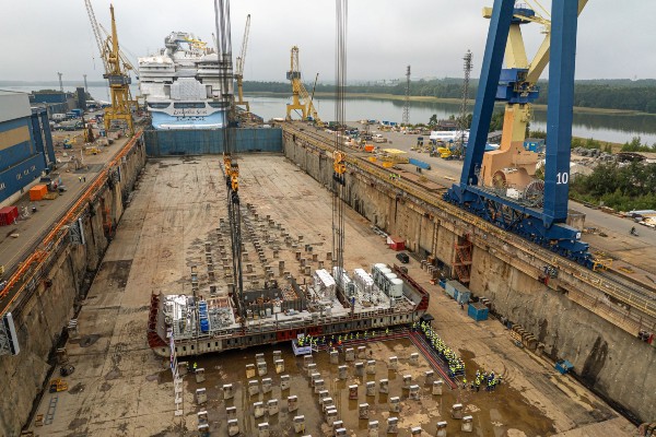 Meyer Turku informó que el primer bloque del “Icon 4” fue bajado al dique seco y el astillero en Finlandia celebró el hito con una ceremonia tradicional de colocación de quilla.