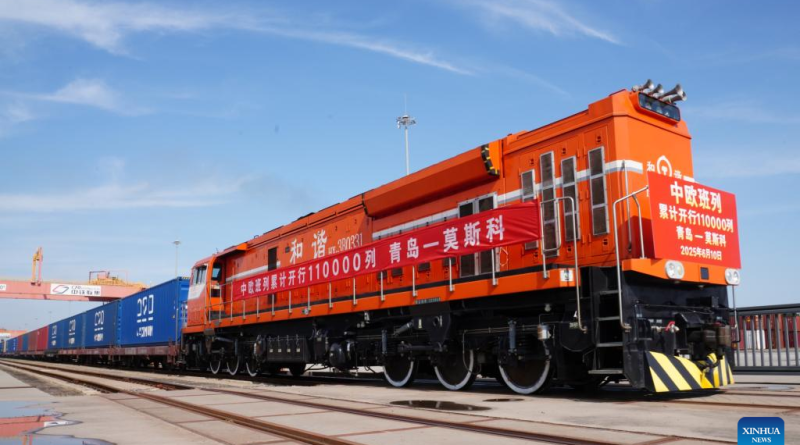 El tren de carga China-Europa número 110.000 partió desde la ciudad de Qingdao, en la provincia oriental china de Shandong, marcando un hito en el desarrollo de este servicio.