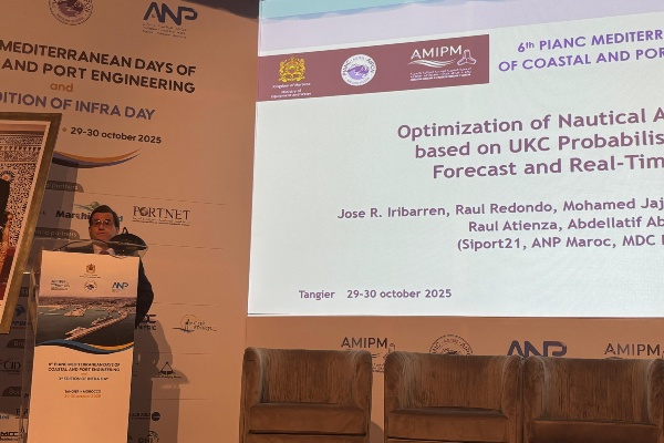 En la sexta edición de los Pianc Mediterranean Days, Siport21, en colaboración con MDC Ingénierie, de Marruecos, presentó un estudio centrado en la optimización del acceso náutico a los puertos mediante el análisis probabilístico del resguardo bajo quilla (UKC). La investigación introduce una metodología transformadora, certificada por DNV, que mejora la operatividad y la seguridad portuaria para el acceso de grandes buques que navegan bajo condiciones ambientales complejas.