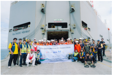 El simulacro se llevó a cabo a bordo del buque Ro-Ro Baltimore Highway, operado por K Line, con la participación de la tripulación del buque, Namyong Terminal PCL, la Oficina de Control de Tráfico de Buques y Seguridad Marítima (VTCMSO) del Departamento Marítimo de Tailandia, la Autoridad Portuaria de Tailandia, así como el departamento de bomberos local y los servicios médicos de emergencia del puerto.