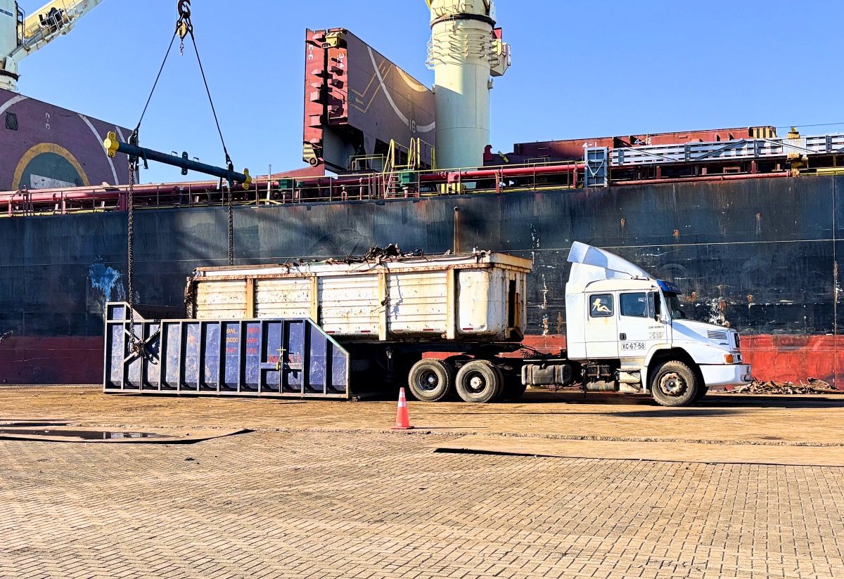 Cargan 15 mil toneladas de chatarra rumbo a Ecuador en Talcahuano Terminal Portuario