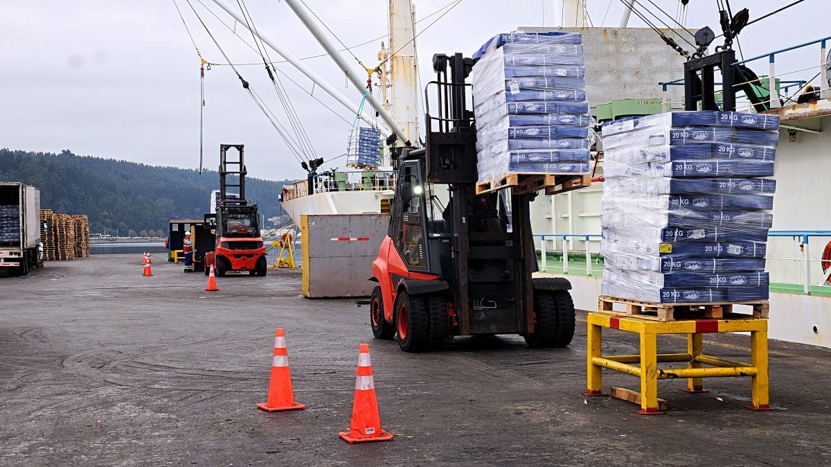Proceso de embarque de pescado congelado en Talcahuano Terminal Portuario