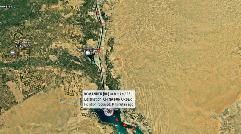 El buque petrolero Komander, con bandera rusa y sancionado por Estados Unidos, el Reino Unido y la Unión Europea, sufrió una falla en su maquinaria y encalló en el Canal de Suez, mientras transitaba en el último lugar de un convoy de 19 embarcaciones en el carril sur. El incidente ocurrió a la altura del kilómetro 47 alrededor de las 12:30 p. m. (hora local) tras lo cual la nave fue reflotada sin alterar el flujo de barcos por la vía.