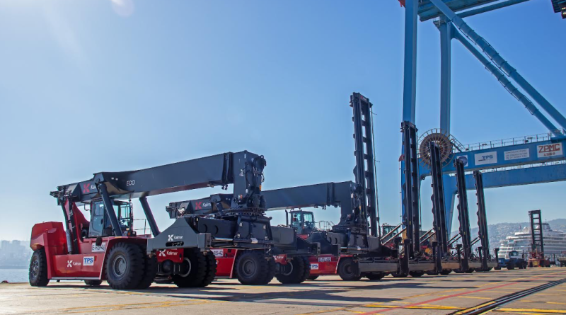 Un total de nueve equipos de patio, entre grúas Reachstacker y Toplifter, incorporó Terminal Pacífico Sur (TPS) a su operación, unidades que apoyarán las faenas de stacking de contenedores y desconsolidados, agregando valor a la eficiencia del terminal para poder cumplir con el alto nivel de actividad durante la temporada de exportación frutícola.