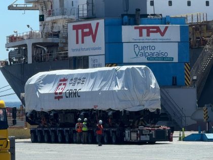 Terminal Portuario Valparaíso (TPV) descargó dos locomotoras nuevas que fueron adquiridas por la empresa ferroviaria Transap a la fábrica china CRRC.
