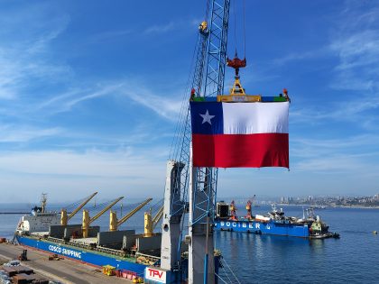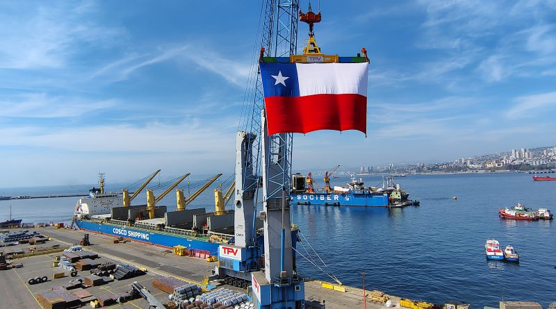 La imponente bandera mide 12 metros de largo por 8 metros de alto y puede ser vista desde distintos puntos de la ciudad. “Cuelga majestuosamente de una de las grúas Gottwald del terminal. Este hito no solo simboliza el compromiso de TPV con la comunidad de Valparaíso, sino que también realza la importancia del puerto como un pilar fundamental de la economía e identidad comunal/regional”, remarcó TPV.