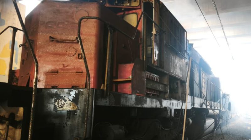 Un conjunto de imágenes mostró la locomotora con focos de llamas, algunas de sus partes desarmadas y con rastros de haber sido alcanzada por el fuego.