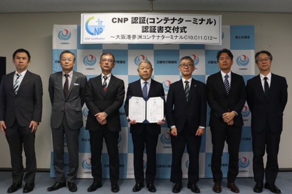 Las terminales de contenedores C10, C11 y C12 de Yumeshima en el Puerto de Osaka son las segundas terminales de la Zona Portuaria de Hanshin en recibir la certificación PNC (Puertos Neutros en Carbono), iniciativa que, en consonancia con los objetivos gubernamentales, como la neutralidad de carbono para 2050, impulsa el Ministerio de Tierra, Infraestructura, Transporte y Turismo de Japón.