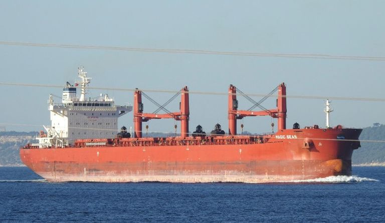 El barco afectado fue identificado como Magic Seas, un granelero con 199 metros de eslora y 32 metros de manga, que navega con bandera de Liberia y es propiedad de una compañía griega.