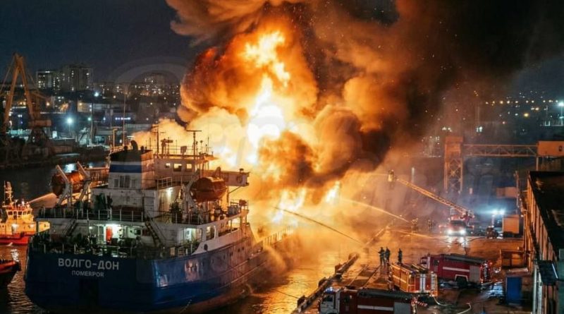 Skryabin afirmó que “el incendio en el petrolero anclado en el puerto, provocado por el ataque con dron, está siendo extinguido. Lamentablemente, hay muertos y heridos”.