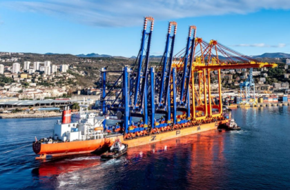 “Están parcialmente ensambladas con la pluma bajada para poder pasar bajo el puente de Canakkale en el estrecho de los Dardanelos y el puente Osman Gazi al ingresar al Golfo de Izmit. En su trayecto desde Shanghái, el buque previamente descargó grúas en Rijeka“, puntualizó Alphaliner.