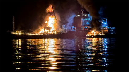 El incendio se extinguió alrededor de las 7:45 de la mañana, pero la causa no se conoció de inmediato. La Guardia Costera dijo que el petrolero contenía alrededor de 2.500 toneladas de productos químicos tóxicos, pero no había podido confirmar hasta el sábado por la mañana si esos productos químicos se habían derramado en las aguas del puerto.