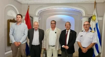 El embajador del Paraguay en Uruguay, Didier Olmedo, se reunió con una delegación de la Administración Nacional de Puertos (ANP) integrada por su vicepresidente, Constante Mendiondo, el gerente de Operaciones, Daniel Fernández y el capitán del puerto de Nueva Palmira, Nicolás Suárez.