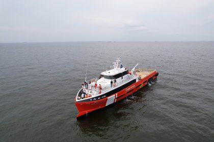 El megapuerto de Chancay, que se encuentra en la última etapa de su fase constructiva, recibió al primer buque portacontenedores en sus instalaciones con el objetivo de efectuar las pruebas iniciales de movimiento de carga en el recinto que se inaugurará en el mes de noviembre en el marco de la próxima cumbre de la APEC.