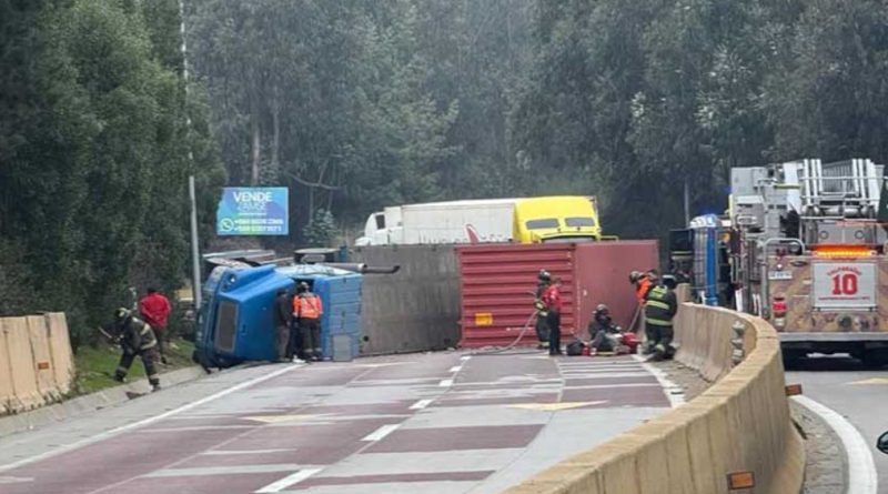Un camión que movilizaba un contenedor volcó en el Camino La Pólvora, altura enlace San Roque, bloqueando las dos vías en dirección al Puerto de Valparaíso.