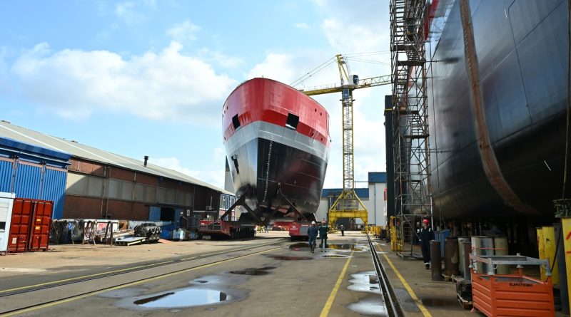 Wagenborg alcanzó un nuevo hito en la construcción de su sexto buque EasyMax en Royal Niestern Sander, luego que la sección de proa se trasladó de la sala de montaje a la zona exterior, donde continuará su equipamiento antes de unirse a la popa.